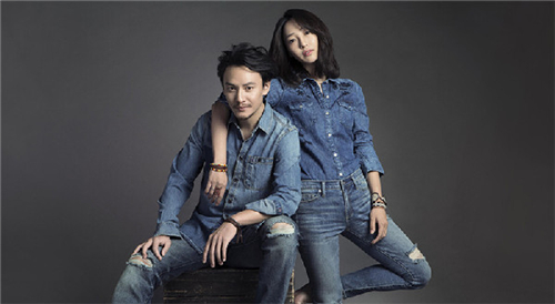 白百何張震合拍廣告大片 休閑牛仔裝打扮個性