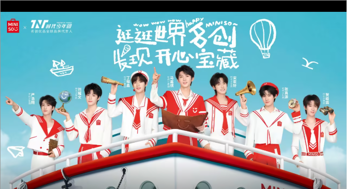 8 月 8 日,名創(chuàng)優(yōu)品正是官宣時(shí)代少年團(tuán)(明星代言公司)為品牌全球代言人。在發(fā)布的官方代言大片中,時(shí)代少年團(tuán)化身七位航海少年揚(yáng)帆出海出發(fā)探尋世界各地的開(kāi)心寶藏,從游歷奇妙的潮玩島嶼、到穿越變幻的季節(jié)之旅、甚至?xí)秤螘r(shí)尚的美妝都會(huì),影片中的內(nèi)容也對(duì)應(yīng)了近年來(lái)名創(chuàng)優(yōu)品在海外的發(fā)展,如今全球 112 個(gè)國(guó)家和地區(qū)都有名創(chuàng)的身影,每一個(gè)角落都隱藏著閃閃發(fā)光的開(kāi)心寶藏,名創(chuàng)優(yōu)品希望大家能夠在時(shí)代少年團(tuán)的帶領(lǐng)下一逛世界名創(chuàng),發(fā)現(xiàn)開(kāi)心寶藏。