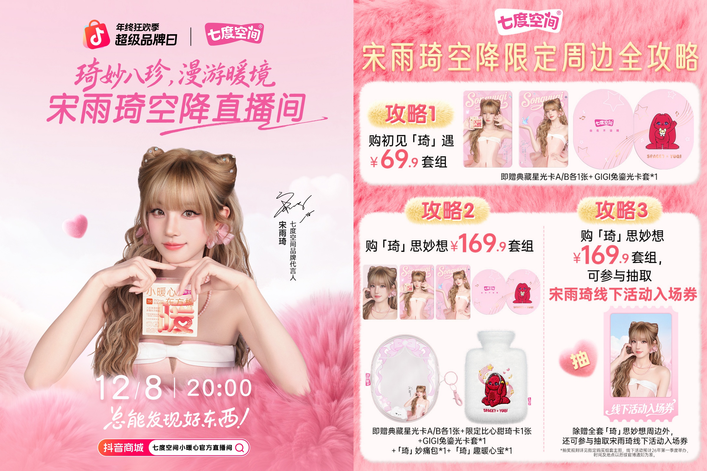 12 月 4 日,七度空間正式官宣宋雨琦(明星代言公司)為品牌代言人,共同開啟「琦」遇之旅。此次官宣,二者共同推廣「小暖心」系列,七度空間特別攜手宋雨琦帶來一支奇幻短片,與她共同開啟采集八珍本草、捕捉東方云棉的任務(wù),強(qiáng)化產(chǎn)品溫暖滋養(yǎng)的賣點(diǎn)。
