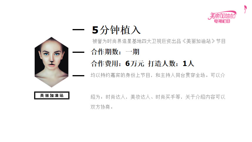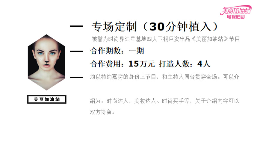 《美麗加油站》是一檔具有國際化性質(zhì)的生活服務(wù)類高端時(shí)尚節(jié)目。節(jié)目每一期一個(gè)時(shí)尚主題,邀請知名演員,設(shè)計(jì)師,時(shí)尚達(dá)人,著名護(hù)膚美容師及網(wǎng)紅等和主持人共同探討,分享。。。