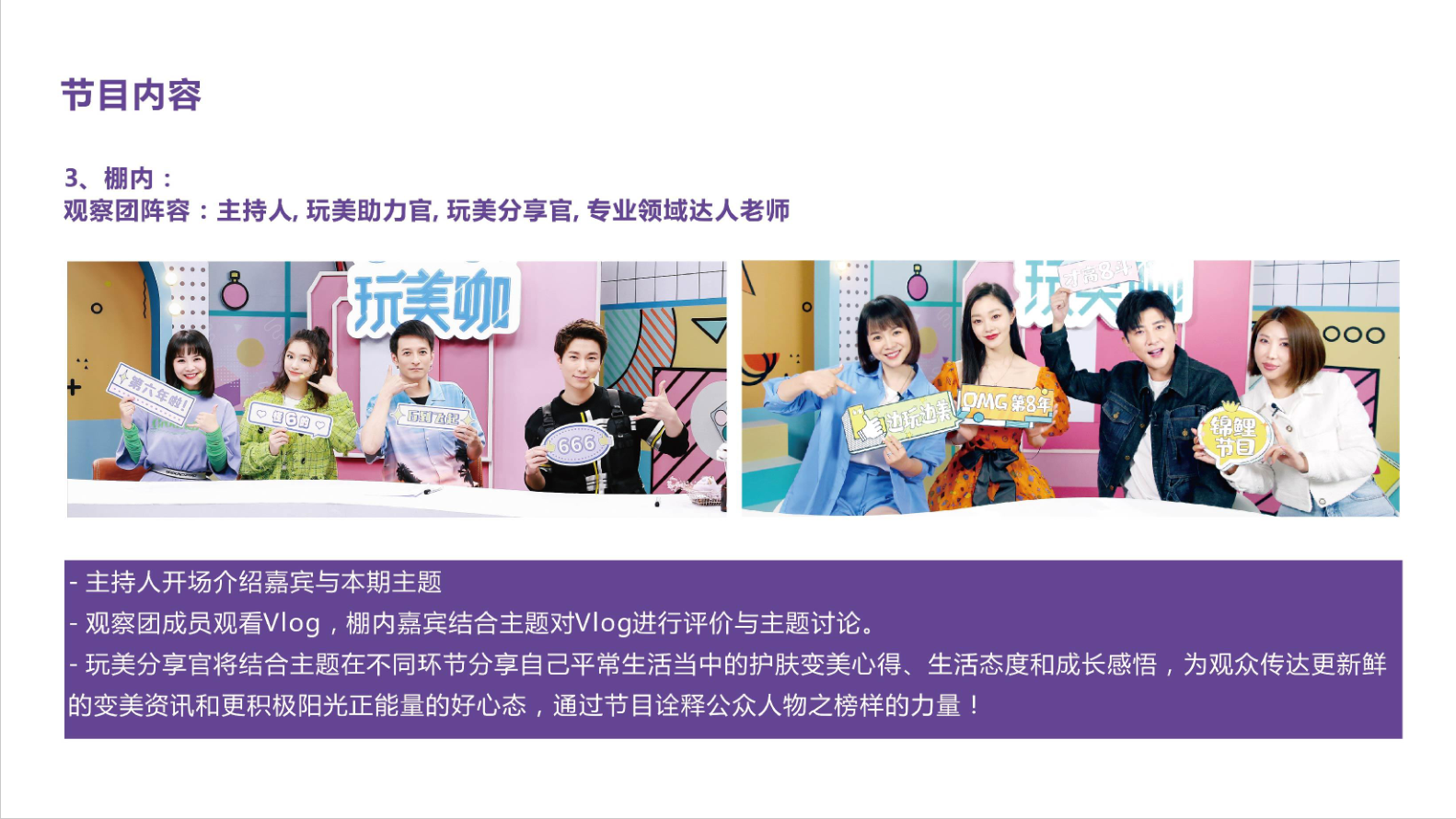 《OMG玩美咖》節(jié)目以亞洲女性為主力觀眾群體,擯棄演播室中傳統(tǒng)、枯燥的說教模式,將節(jié)目形式設(shè)定為純外景體驗(yàn)式。采取時(shí)下最熱門的明星生活秀模式,明星閨蜜團(tuán)在聚會(huì)般的輕松氛圍下分享和推薦,涵蓋都市潮流生活的方方面面,賦予觀眾切身時(shí)尚生活體驗(yàn)。