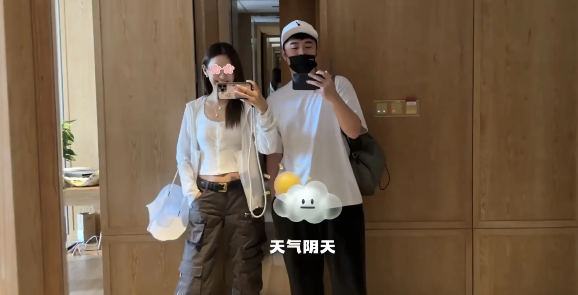 陳赫對鏡拍曬情侶休閑穿搭。