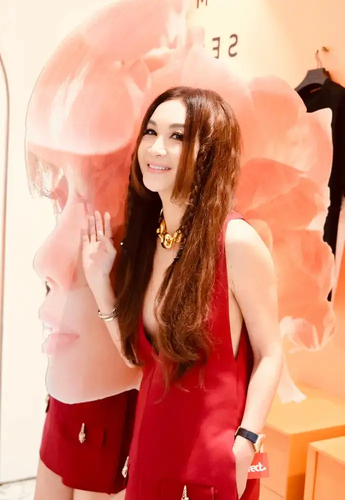 溫碧霞曬出活動(dòng)造型寫真,一襲深V紅裙身材性感豐腴。