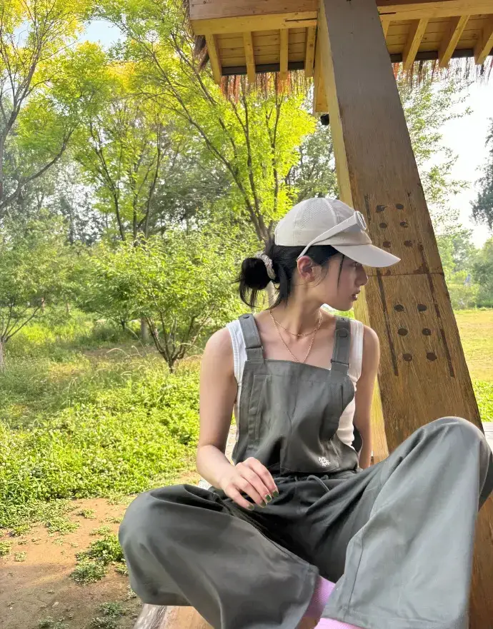 張婧儀曬公園松弛感照片 穿背帶褲少年感滿滿