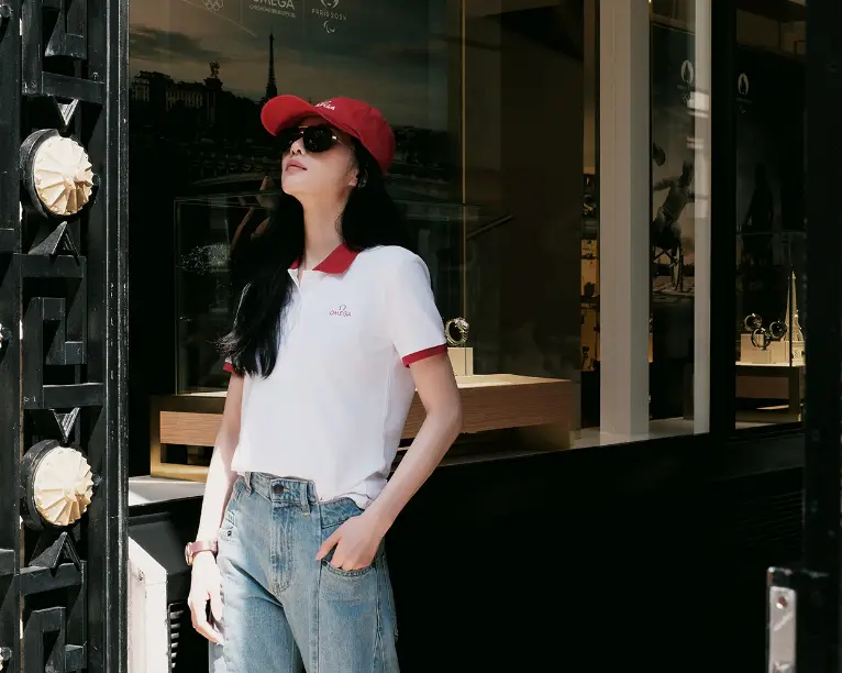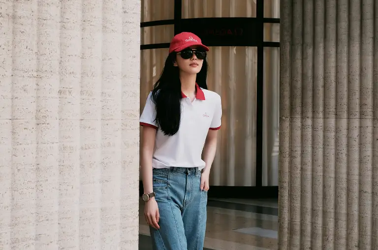 劉詩詩身穿polo衫很有氣質(zhì)。