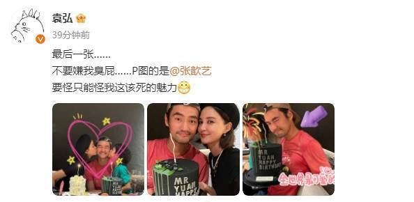 袁弘發(fā)文稱:“最后一張……不要嫌我臭屁……P圖的是@張歆藝,要怪只能怪我這該死的魅力。”、