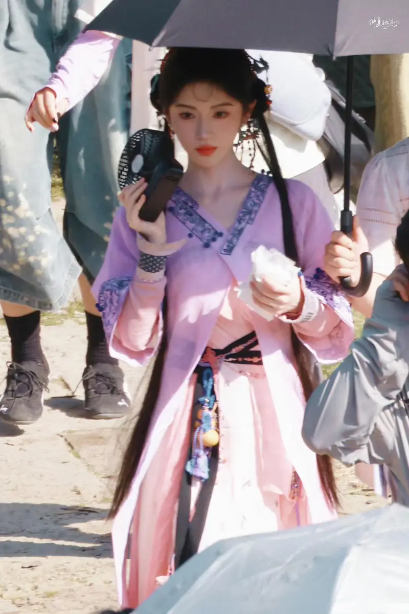日前,鞠婧祎拍攝《來(lái)戰(zhàn)》路透曝光,照片中她穿著粉紫色相間的古裝,衣領(lǐng)設(shè)計(jì)很有新中式的韻味。