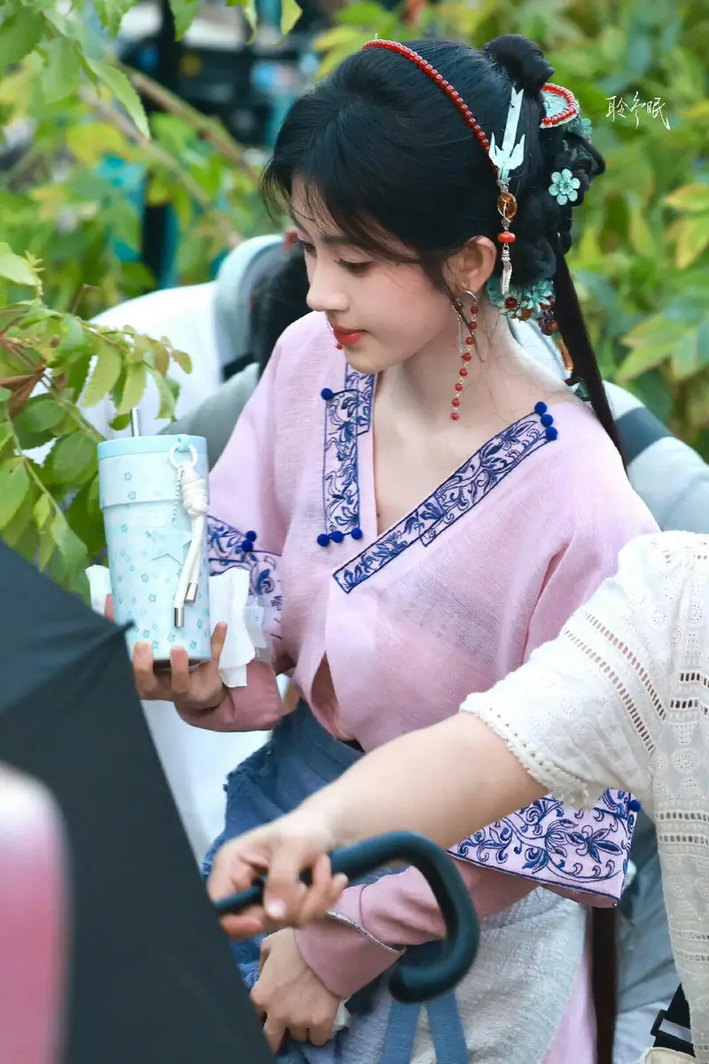 鞠婧祎穿新中式古風(fēng)襦裙清冷迷人 背著書(shū)箱表情靈動(dòng)活潑
