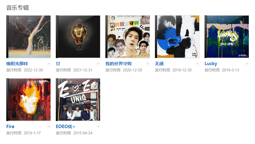 代表作品:有翡、陪你到世界之巔、無感、我的世界守則、陳情令、風起洛陽、人間至味是清歡