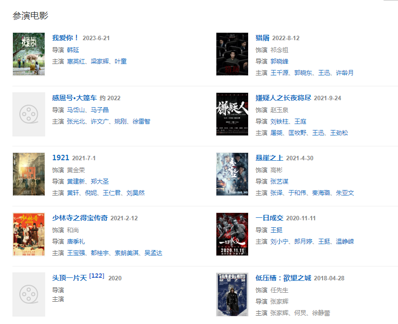 2020年,參演建黨100周年重大革命歷史題材獻禮劇《光榮與夢想》。