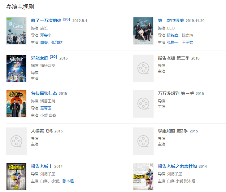 2013年,執(zhí)導并參演的《報告老板》系列網絡劇上線,并獲得2013中國電視榜年度網劇提名 。
