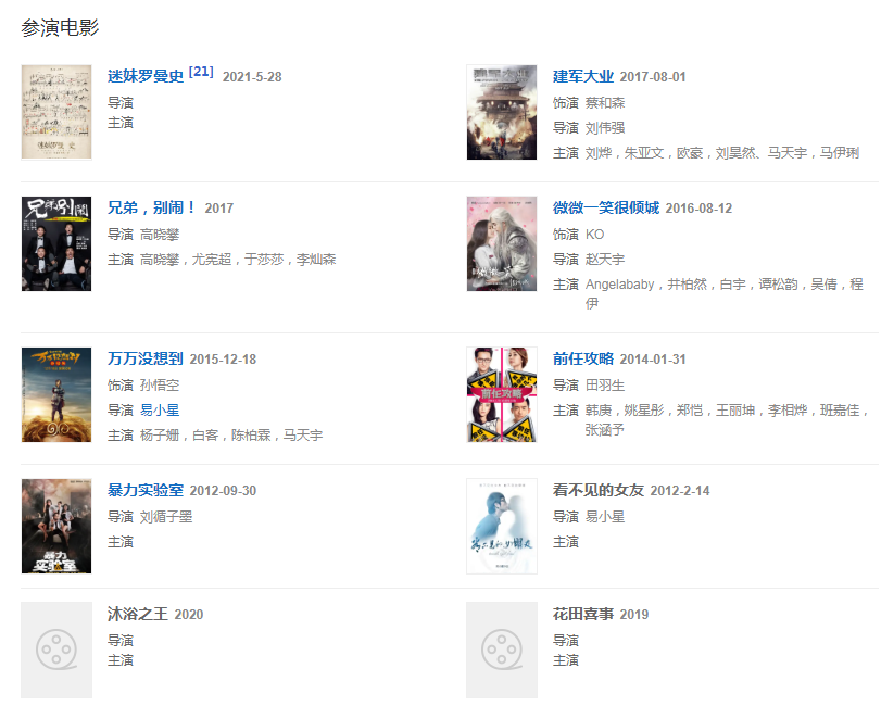 代表作品:報告老板、萬萬沒想到、建軍大業(yè)、微微一笑很傾城、高科技少女喵、揚名立萬