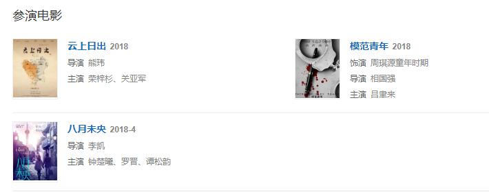 2019年,出演花箐執(zhí)導(dǎo),秦俊杰、闞清子主演的諜戰(zhàn)劇《信仰》;