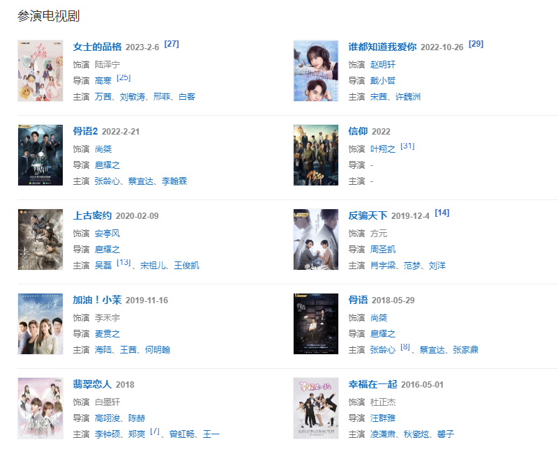2023年2月,主演的電視劇《女士的品格》播出 。