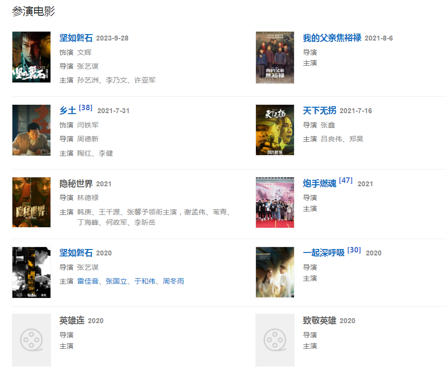 代表作品:紫荊勛章、大雪無痕、亮劍、沉默與謊言、錯(cuò)愛2、國(guó)歌