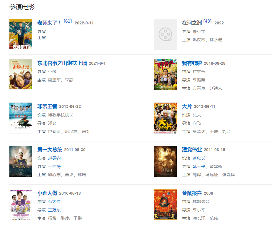 2021年6月1日,主演的喜劇電影《東北喜事之山炮扶上墻》在騰訊視頻獨(dú)家播出 ;10月9日,參演的電影《爸爸媽媽別離開我》在上海舉行開機(jī)新聞發(fā)布會(huì) ;10月21日,參演的電視劇《突圍》播出。