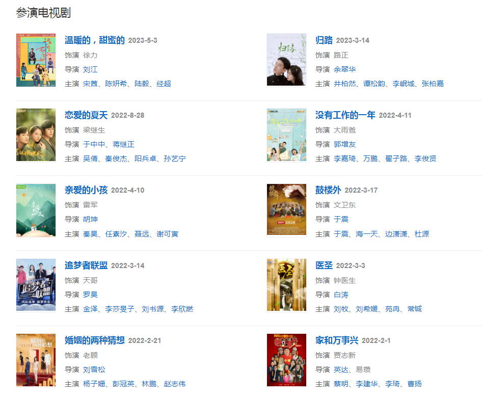 2022年1月,參加2022北京臺(tái)春晚,與楊立新、屠洪剛、劉金山共同演唱歌曲《尋找快樂(lè)》;2月1日,主演的情景喜劇《家和萬(wàn)事興》播出 ;2月21日,特別出演的都市輕喜劇《婚姻的兩種猜想》在湖南衛(wèi)視播出;3月14日,特別出演的都市輕喜劇《追夢(mèng)者聯(lián)盟》播出,在劇中飾演天哥;3月17日,參演的都市情感劇《鼓樓外》播出,在劇中飾演文衛(wèi)東;4月10日,參演的家庭生活劇《親愛(ài)的小孩》播出,在劇中飾演雷軍;4月11日,參演的現(xiàn)代都市話題劇《沒(méi)有工作的一年》播出。