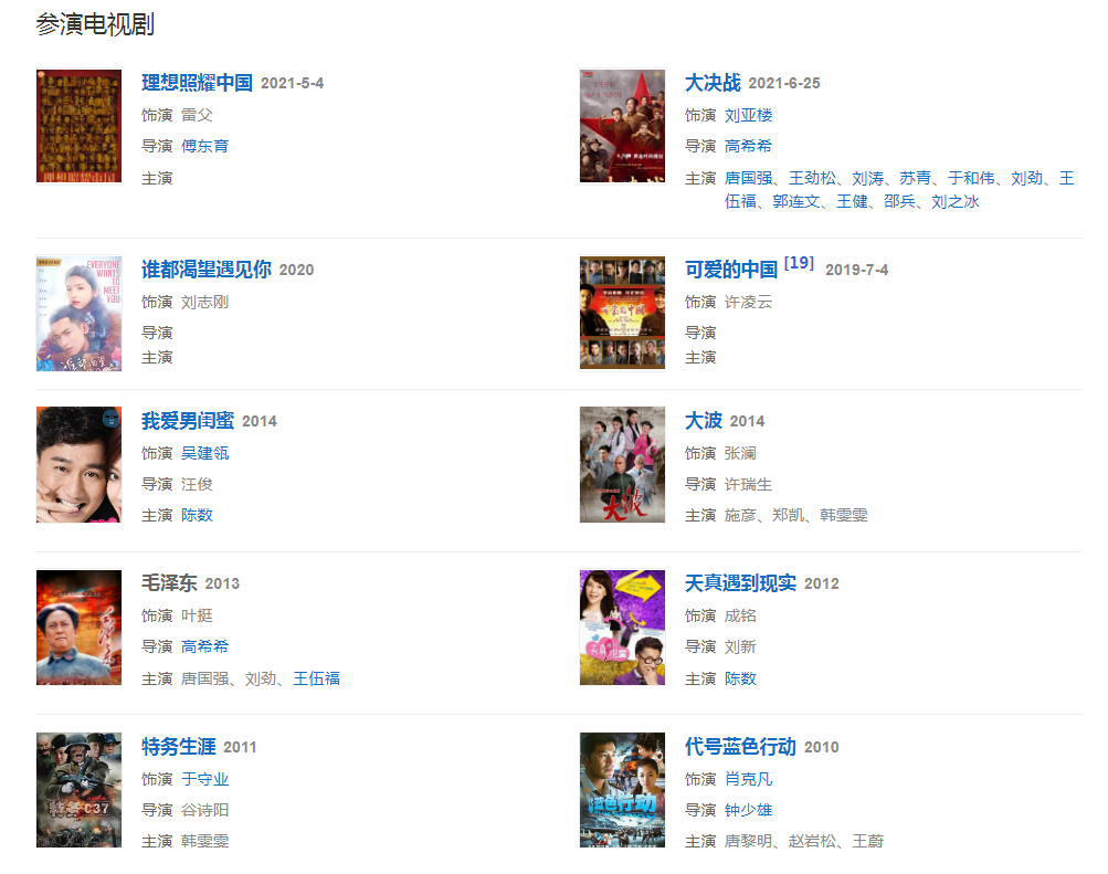 2013年12月在高希希執(zhí)導的史詩電視劇《毛澤東》中飾演葉挺。