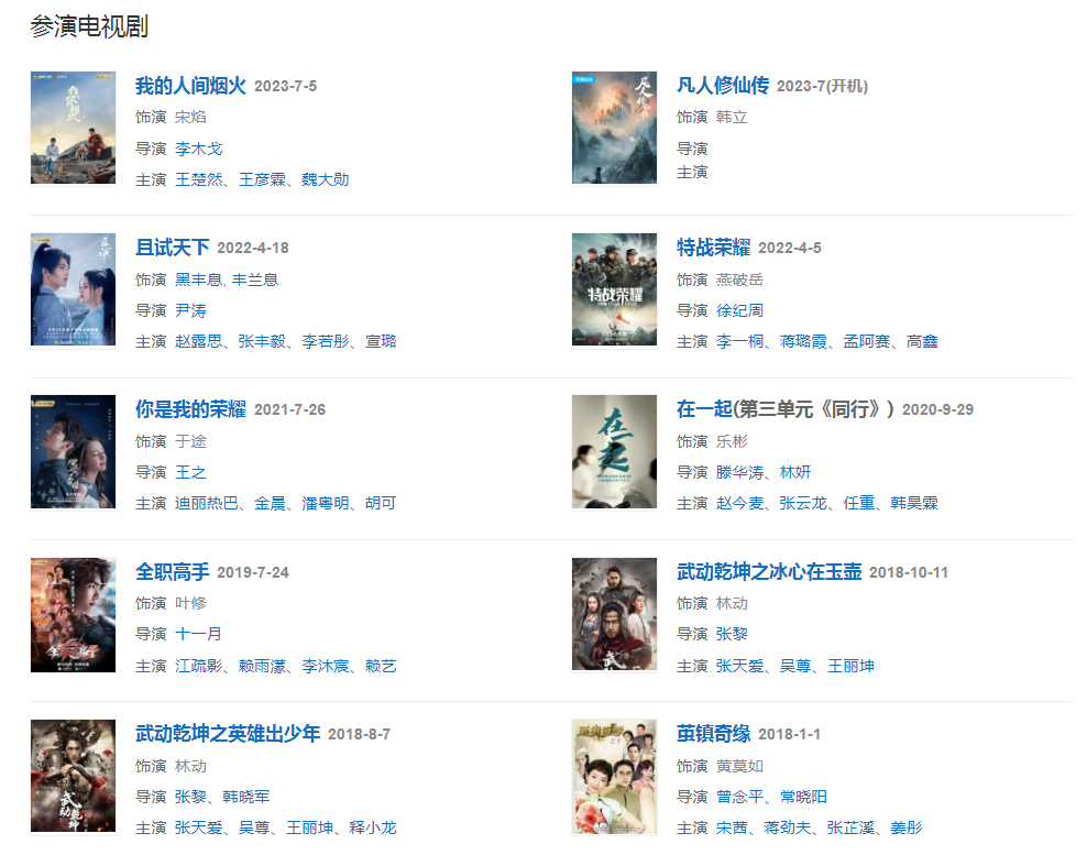 2022年4月5日,主演的軍旅劇《特戰(zhàn)榮耀》播出 ;4月18日,主演的古裝武俠言情劇《且試天下》在騰訊視頻播出 。