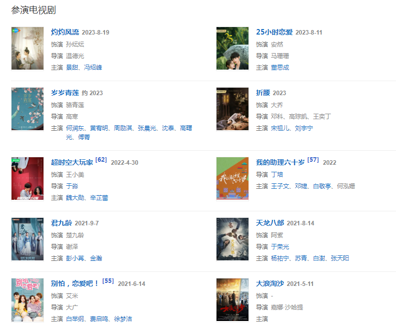 代表作品:匆匆那年、如懿傳、鳳弈、第三種愛情、云巔之上、如夢令