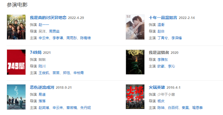 2018年,出演大銀幕處女作《悲傷逆流成河》,從而正式開(kāi)始演藝生涯。2019年,出演由陸川執(zhí)導(dǎo)的冒險(xiǎn)電影《749局》。2020年4月,出演的古裝傳奇劇《清平樂(lè)》播出,在劇中飾演趙徽柔;9月17日,出演的《最美逆行者》在中央電視臺(tái)綜合頻道播出,她在其中飾演于麗娜。