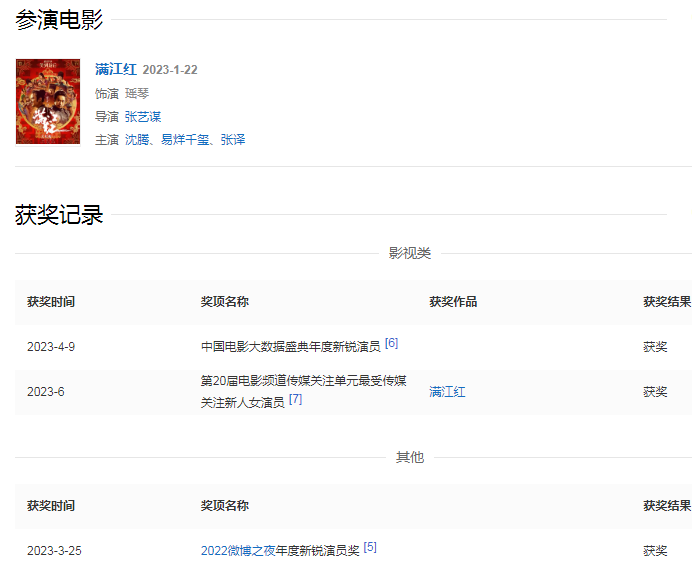 2023年1月22日,王佳怡與沈騰、易烊千璽等人共同主演的張藝謀電影作品《滿江紅》上映,其在片中飾演的瑤琴表面上為柔媚的舞姬,實則是背負國仇家恨的朱顏死士,而這也是她的首部電影作品。