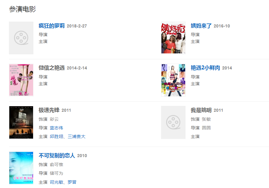 2010年出演電影《不可復(fù)制的戀人》中的“俞可惟”一角;