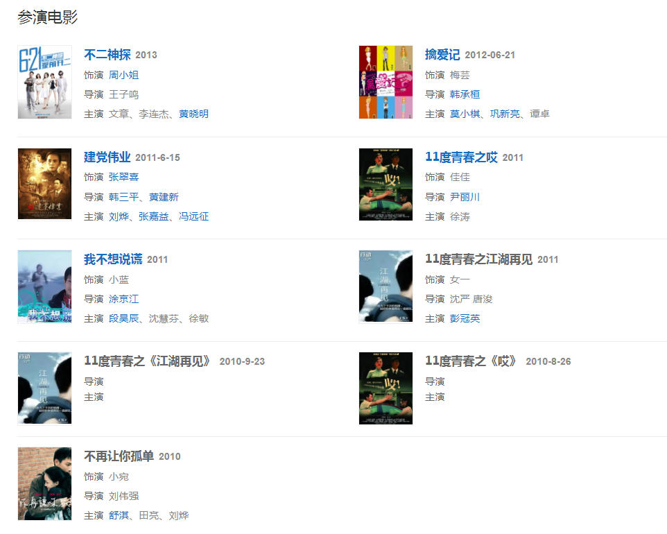 2010年出演網(wǎng)絡(luò)劇《11度青春》系列走紅  。