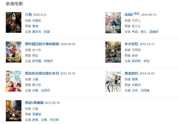 2013年,參演古裝傳奇動作劇《隋唐演義》;同年,出演個人首部電影《西游·降魔篇》。2015年,參演都市愛情片《陪安東尼度過漫長歲月》,搭檔陳偉霆主演都市情感劇《因?yàn)閻矍橛行腋!贰?/span>