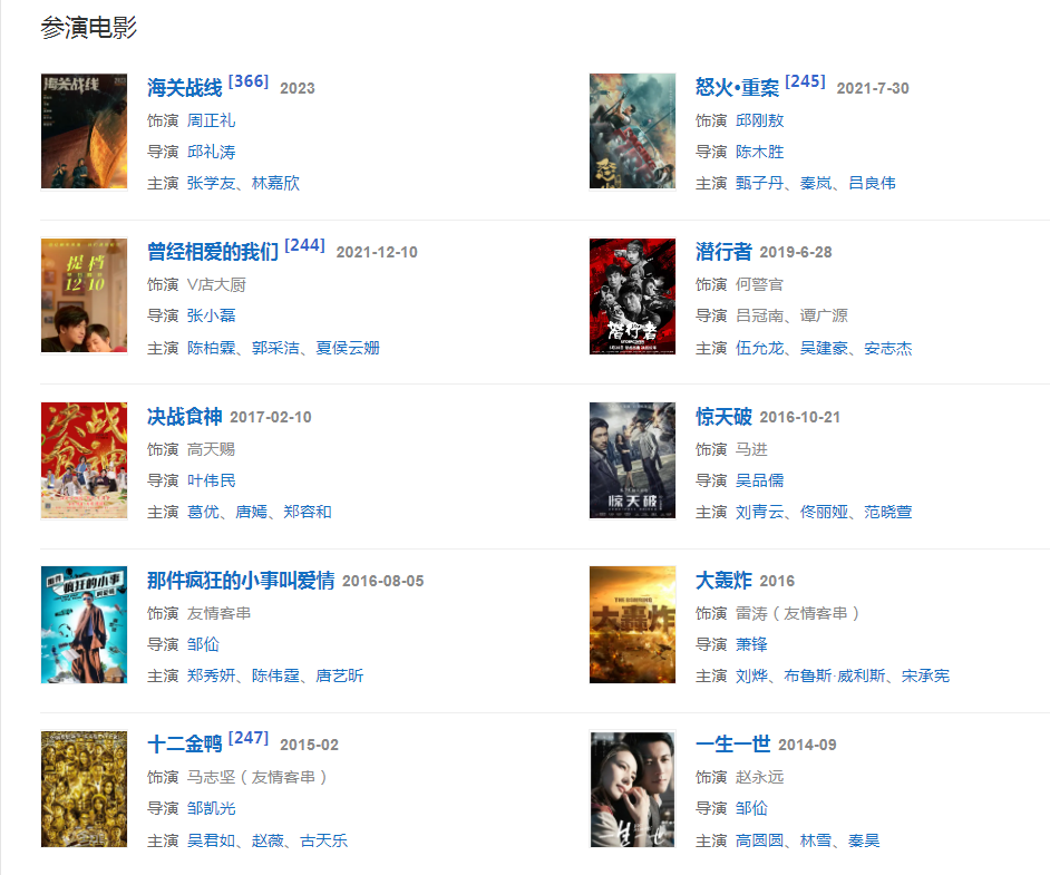 代表作品:活著Viva、謝謝你的愛1999、因為愛所以愛、黃種人、玉蝴蝶、無聲仿有聲、愛后余生、非走不可、潛龍勿用、今生共相伴、只要為你活一天、愛最大、半支煙、逆戰(zhàn)、小魚兒與花無缺、線人、消失的子彈、一生一世、怒火·重案