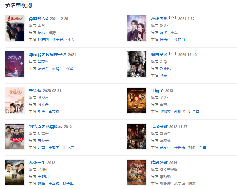 2021年6月22日,現(xiàn)代緝毒劇《不說再見》播出,飾演歐先生;12月29日,主演的近代抗日傳奇劇《勇敢的心2》播出 。