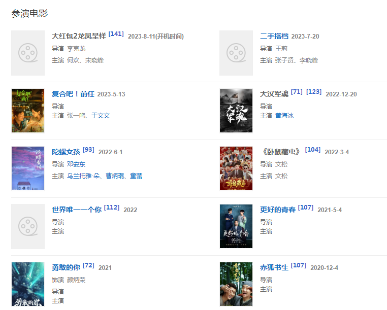 代表作品:情義無價、京城四少、日正當(dāng)中、明宮謎案、大當(dāng)家、那年花開月正圓、西虹市首富、都挺好、辣媽正傳