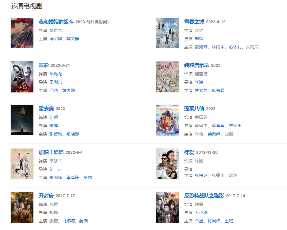 2023年3月21日,參演網(wǎng)絡(luò)劇《蝶影》上映,在劇中飾演梁錫龍 ;4月12日,參演電視劇《青春之城》播出。