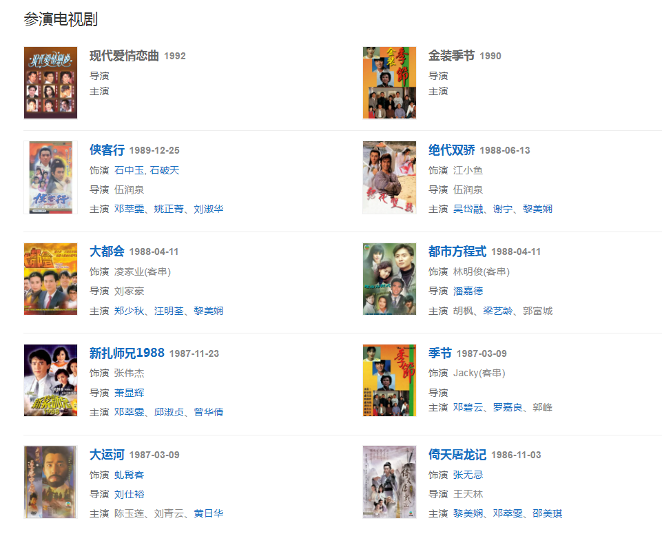 1982年考入TVB無線電視藝員訓(xùn)練班從而正式進(jìn)入演藝圈。上世紀(jì)80年代拍攝了多部電視劇。