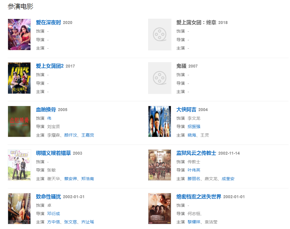 代表作品:刑事偵緝檔案、縱橫四海、壹號(hào)皇庭、掌上明珠、倚天屠龍記