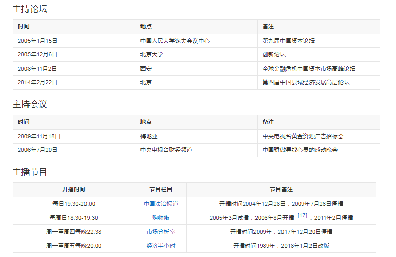 代表作品:購物街、市場(chǎng)分析室、中國(guó)財(cái)經(jīng)報(bào)道、中國(guó)法治報(bào)道