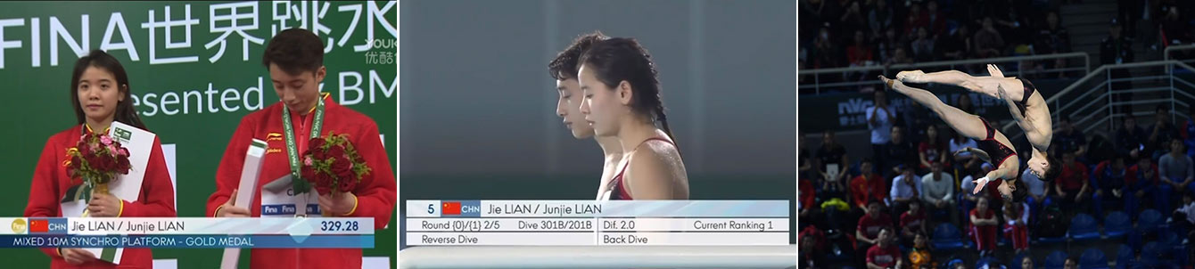2017年3月11日,在國際泳聯(lián)世界跳水系列賽廣州站男女混合雙人十米臺(tái)決賽中,中國選手連婕/練俊杰以355.08分的總成績奪冠。