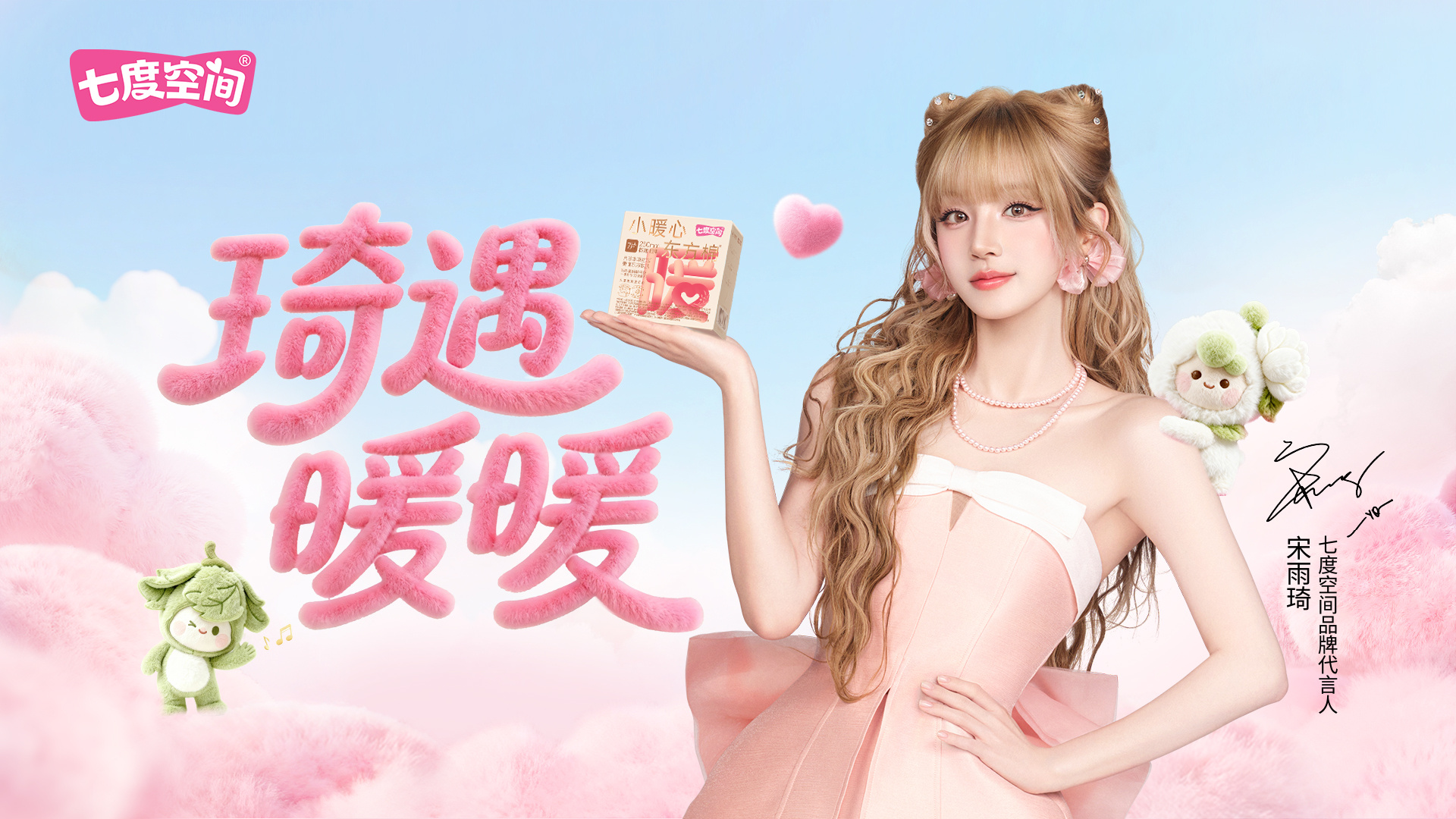 12 月 4 日,七度空間正式官宣宋雨琦(明星代言公司)為品牌代言人,共同開啟「琦」遇之旅。此次官宣,二者共同推廣「小暖心」系列,七度空間特別攜手宋雨琦帶來一支奇幻短片,與她共同開啟采集八珍本草、捕捉東方云棉的任務(wù),強(qiáng)化產(chǎn)品溫暖滋養(yǎng)的賣點(diǎn)。