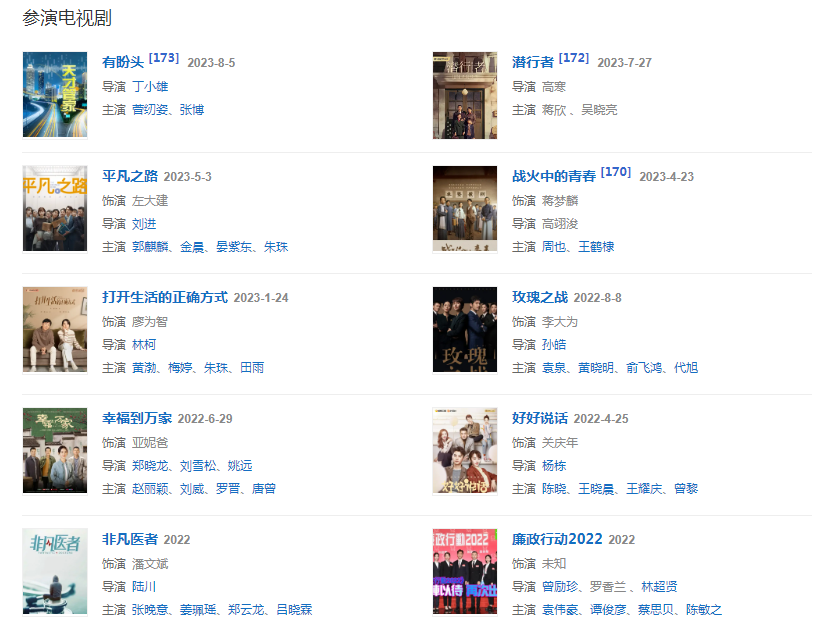 2011年主演年代商戰(zhàn)劇《向東是大?!?;同年參演近代家族劇《大宅門1912》 。