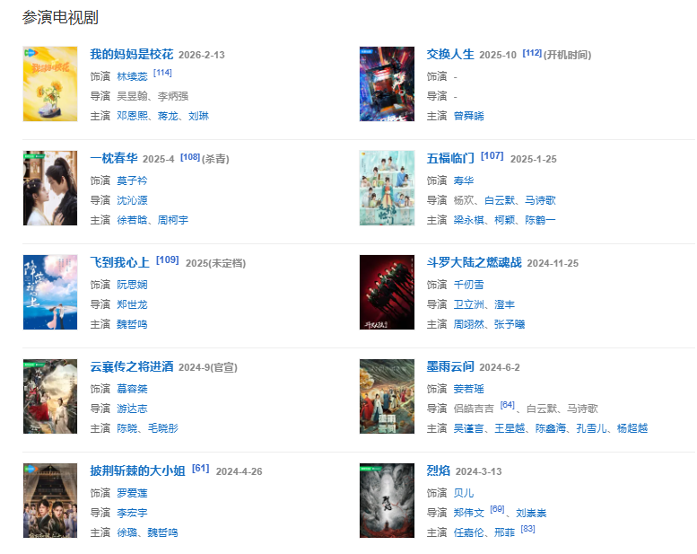 2025年,與盧昱曉、王星越共同出演的古代市井婚戀喜劇《五福臨門》播出。