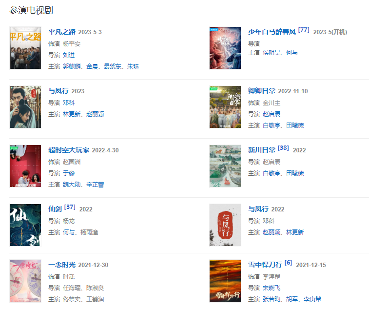 2019年11月12日,參演的古裝劇《鶴唳華亭》播出;12月20日,參演的都市律政劇《精英律師》播出。